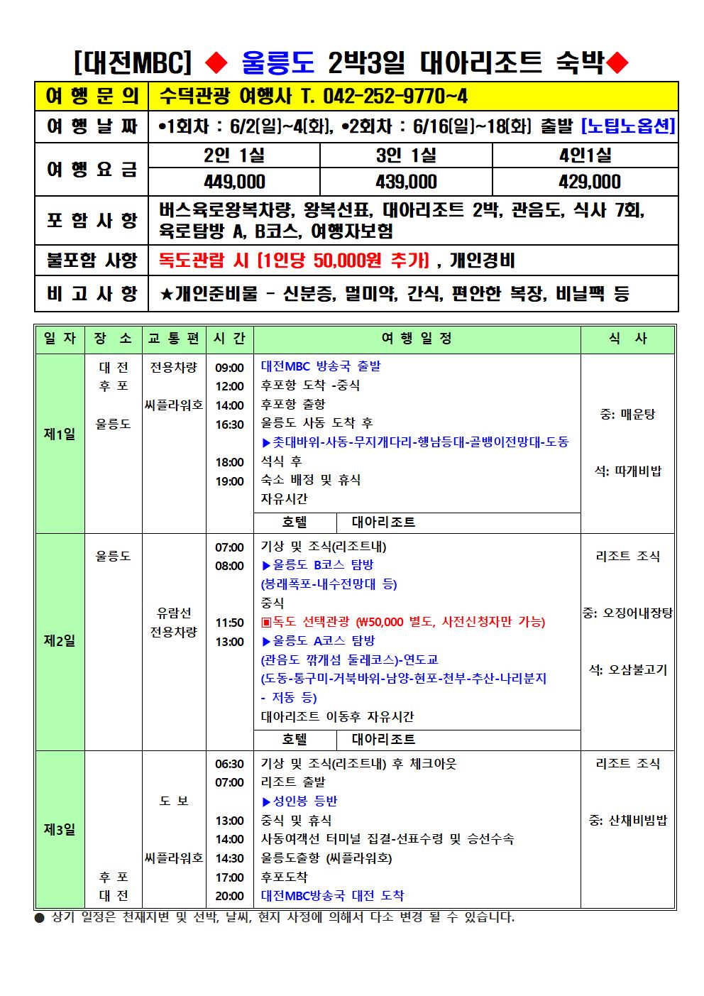6월 2일(일요일), 16일(일요일) 후포항 출발