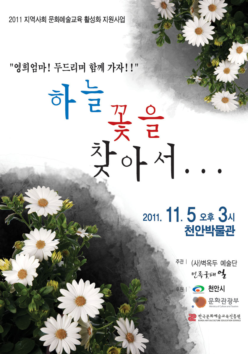 제보하고싶어요.... 공연안내_난타뮤지컬 \'하늘꽃을찾아서\' 등록일 : 2011-11-05 03:41