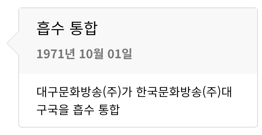 대전문화방송(주)가 한국문화방송(주)대전국을 흡수 통합에 대한 자료 출처는 https://dgmbc.com/company_history 대구MBC 연혁 홈페이지 입니다.