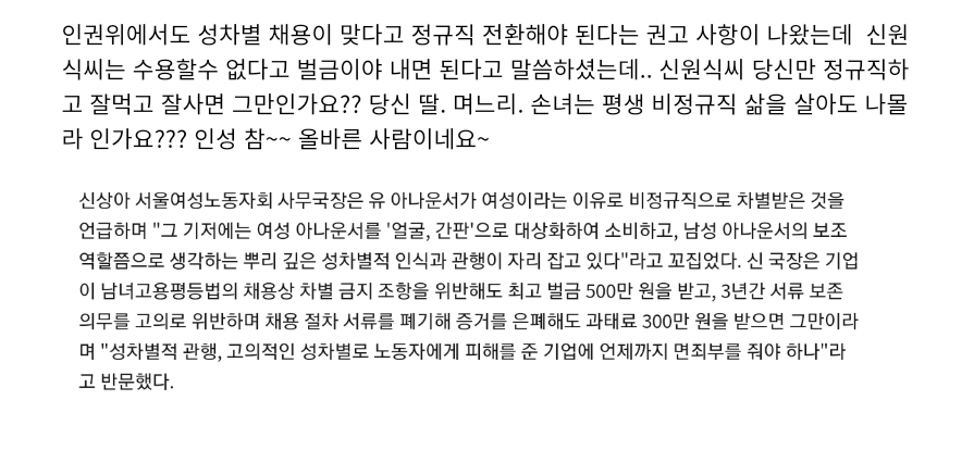 시청자의견 시청자 의견 신원식씨 " 내손녀는 평생 비정규직 삶을 살길바래~" 등록일 : 2020-07-02 14:50 조회수 : 149 여러분의 의견을 남겨주세요 ※ 댓글 작성시 상대방에 대한 배려와 책임을 담아 깨끗한 댓글 환경에 동참해 주세요. 0/2000 등록 수정 삭제 이전글 다음글 목록
