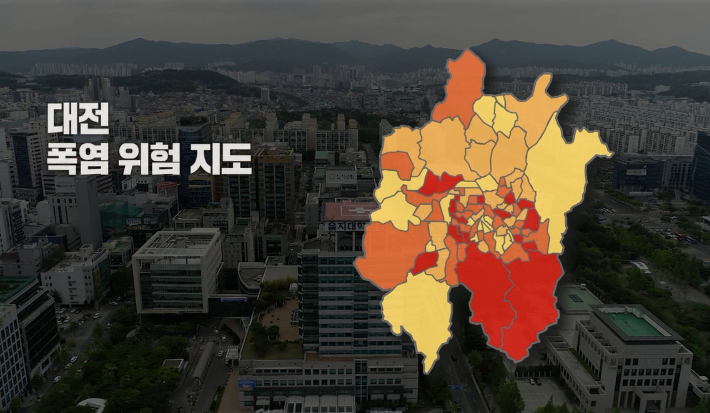 대전시 전역 82개 행정동의 폭염 위험 순위와