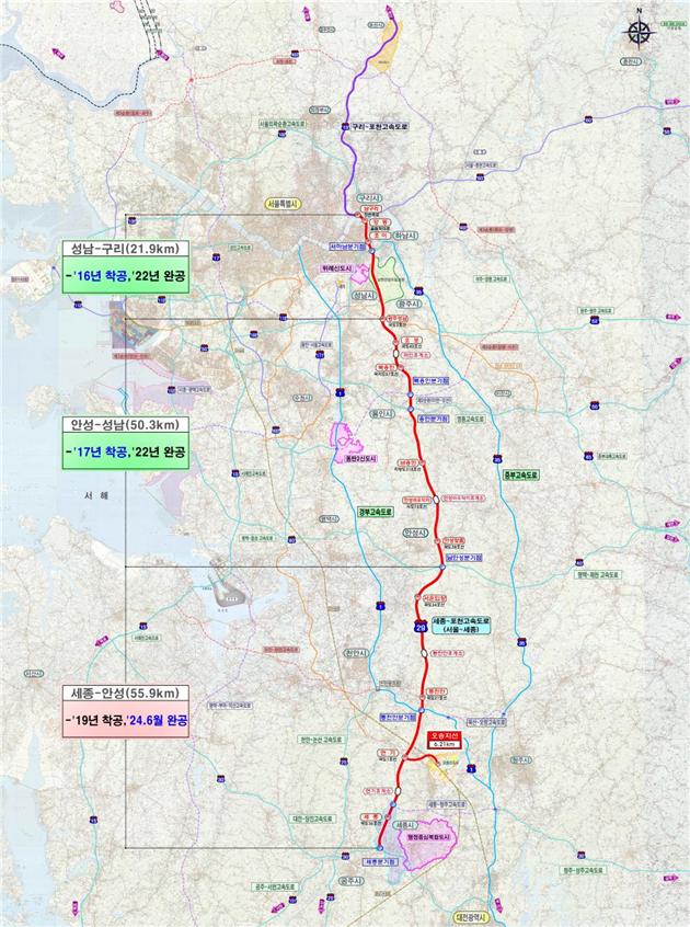 서울~세종 고속도로는 총사업비 9조6천 억,